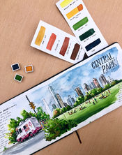 Aquareldocent, freelance zakelijk tekenaar en eeuwige creatieve enthousiasteling. Al sinds mijn studententijd ben ik verliefd op aquarel: je kunt er in no-time iets prachtigs mee maken en het past zo in je tas. Daarom reis ik nooit zonder mijn schetsboek (oké, meestal is het er meer dan 1 of 2 of 3.... ).