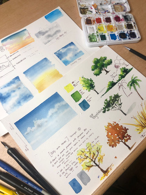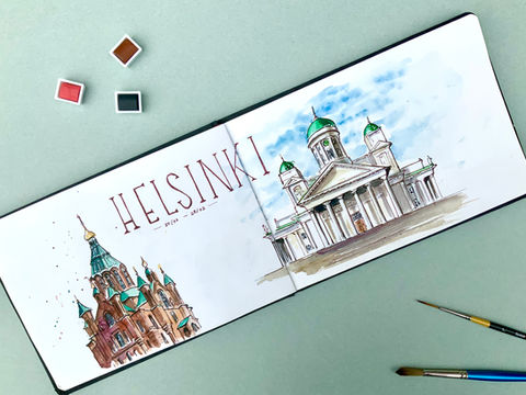 Aquareldocent, freelance zakelijk tekenaar en eeuwige creatieve enthousiasteling. Al sinds mijn studententijd ben ik verliefd op aquarel: je kunt er in no-time iets prachtigs mee maken en het past zo in je tas. Daarom reis ik nooit zonder mijn schetsboek (oké, meestal is het er meer dan 1 of 2 of 3.... ).